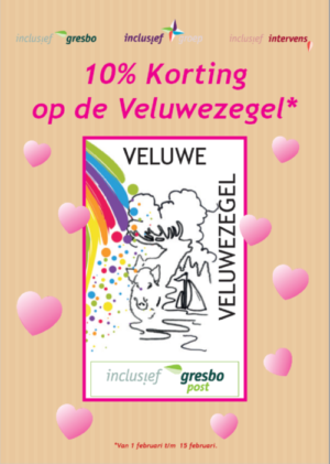 Van 1 tot en met 15 februari kunt u dé VeluweZegel van Inclusief Gresbo Post kopen met 10% korting. Wilt u een kaart of brief sturen naar uw geliefde, grootouders, buren, familie of vrienden, maakt u dan gebruik van deze aanbieding.