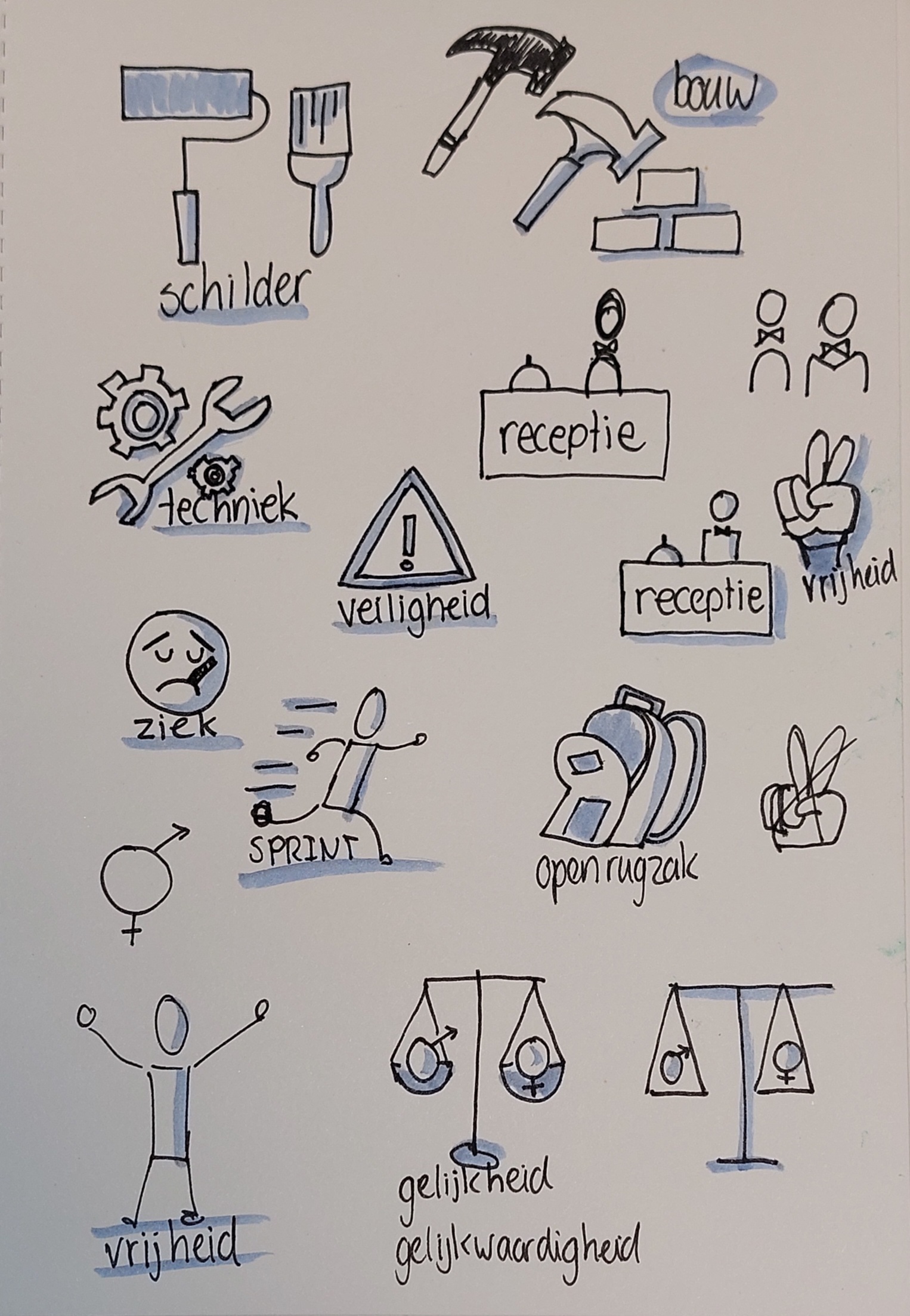 Leuke aanvulling is dat onze trainers, Sandra Mölling en Nelie van der Velde, onlangs ook de training ‘Tekenen in de trainingen’ hebben gevolgd. Door tekeningen en symbolen te gebruiken, kunnen de trainingen visueel worden ondersteund. Vooral voor statushouders werkt dit goed. Op dit moment werken we aan een symbolenbibliotheek met daarin veelgebruikte woorden.