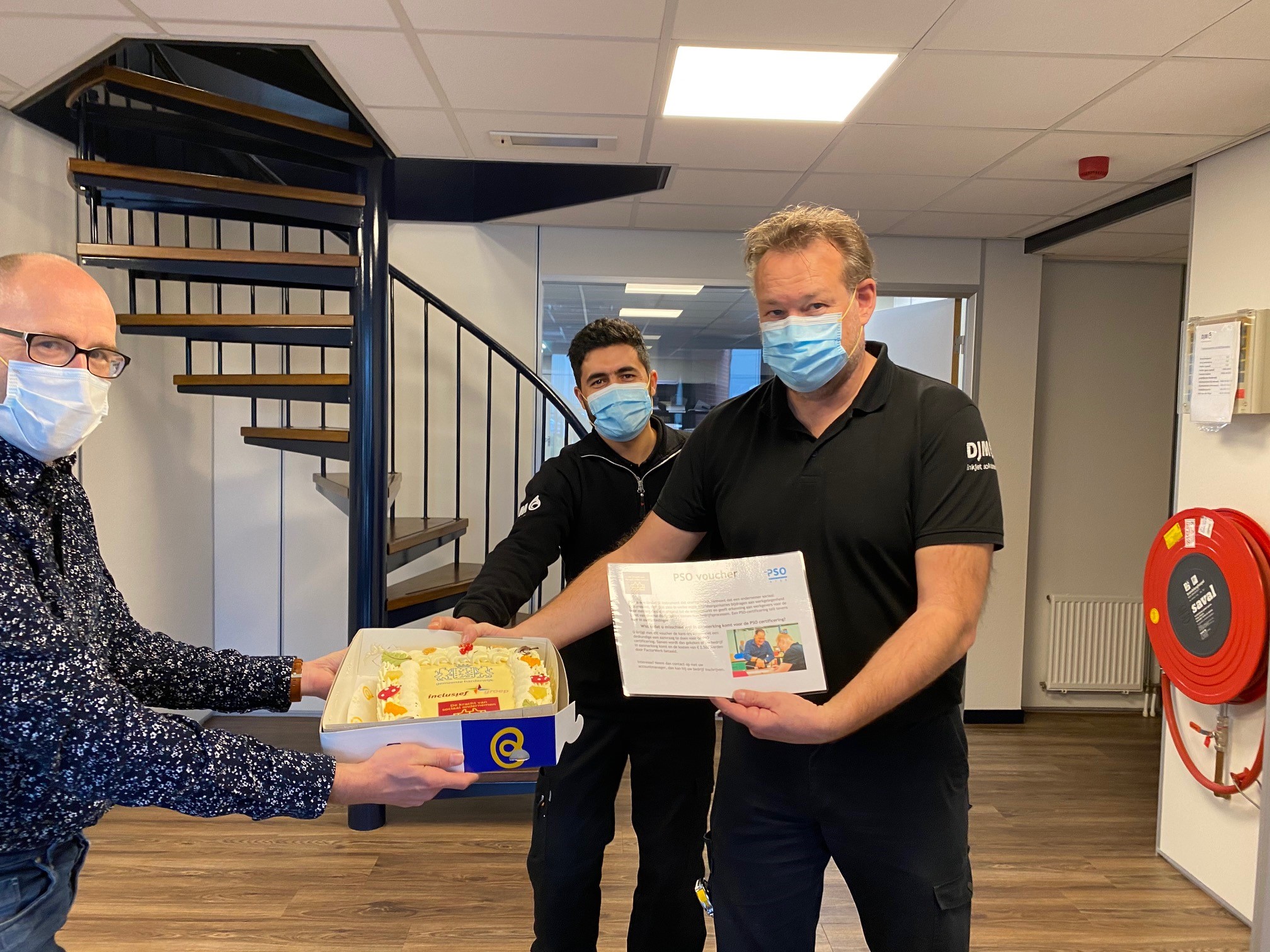 Onlangs is een kandidaat vanuit de uitkering gestart bij DJM Inktjet Solutions in Harderwijk. Hij is goed begeleid en kreeg de tijd om het werk te leren en aan zijn persoonlijke doelen te werken. Inmiddels heeft hij een arbeidscontract aangeboden gekregen. Nu krijg een volgende kandidaat de kans om te starten op basis van een werkervaringsplaats. Hij krijgt hier de gelegenheid om in uren op te bouwen richting een fulltime werkweek. Op die manier doet hij werkritme een ervaring op. We hopen allemaal dat ook dit traject uitmondt in een langdurige samenwerking. DJM Inktjet Solutions heeft bewezen een sociale ondernemer te zijn. Men ziet potentie in mensen die een opstapje naar de arbeidsmarkt goed kunnen gebruiken. Omdat het de week van de 1000 voorbeelden is, ontvangt DJM Inktjet Solutions een taart als dank omdat zij mensen met een arbeidsbeperking een kans bieden.